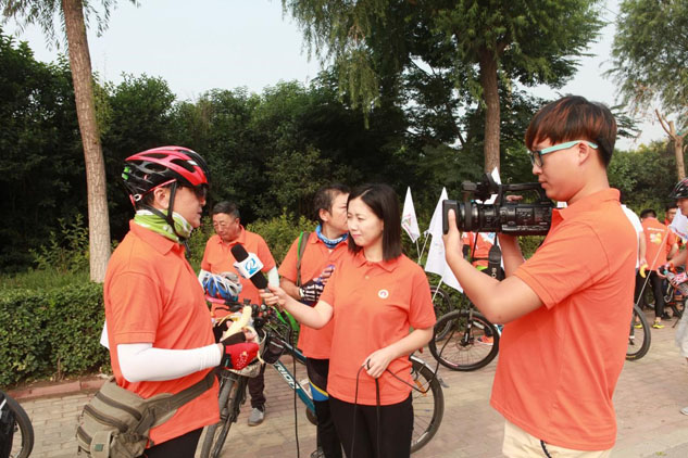 愛心騎行活動得到了山東齊魯電視臺的極大關注,記者現場采訪騎行隊員!