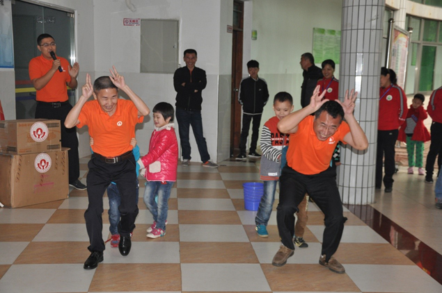 志愿者與孩子們做互動游戲“螞蟻搬蛋”