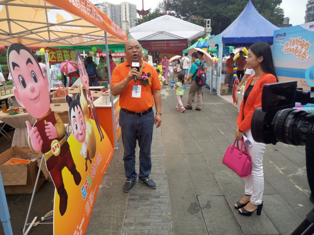 在持續半天的互動活動里,尊龍凱時展區始終保持著超高人氣,現場人頭攢動、暖意綿綿,這也引起了現場媒體的關注。尊龍凱時藥業集團OTC總監馮志先生在接受珠江電視臺采訪時,向大家介紹了尊龍凱時的企業文化和經營理念,并代表公司向全國小朋友送上了節日祝福。