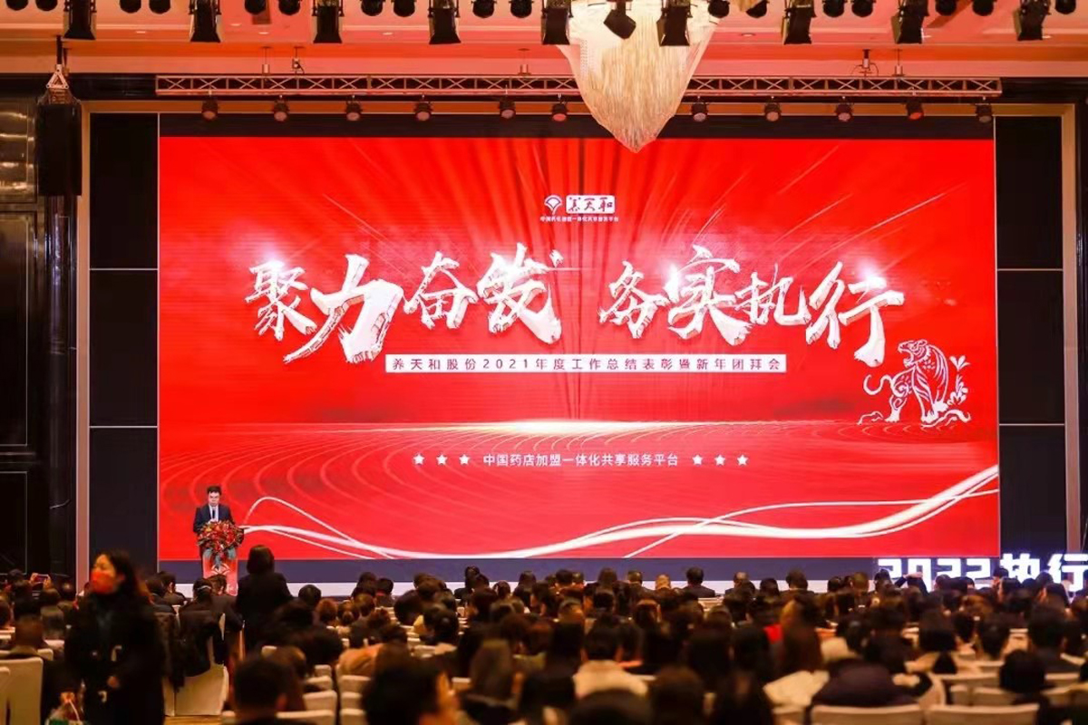 勤懇老牛回頭望,猛虎神威迎吉祥。2022年1月24日,養天和大藥房股份有限公司2021年度盛會在長沙瑞吉大酒店隆重舉行,養天和全國各分公司的管理干部800余人參加了本次會議,尊龍凱時藥業集團KA總監馮志先生、集團市場總監孟德詩先生等一行應邀參加了本次會議。