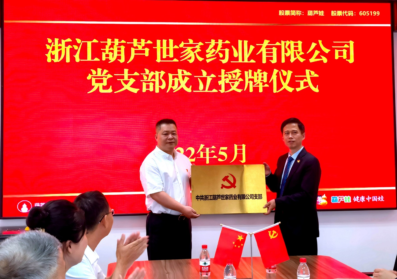 活動現場宣讀了《關于同意成立中共浙江葫蘆世家藥業有限公司支部有關事項的批復》,并進行了黨支部授牌儀式,支部書記金維逸代表黨支部接牌,并帶領現場黨員重溫入黨誓詞。