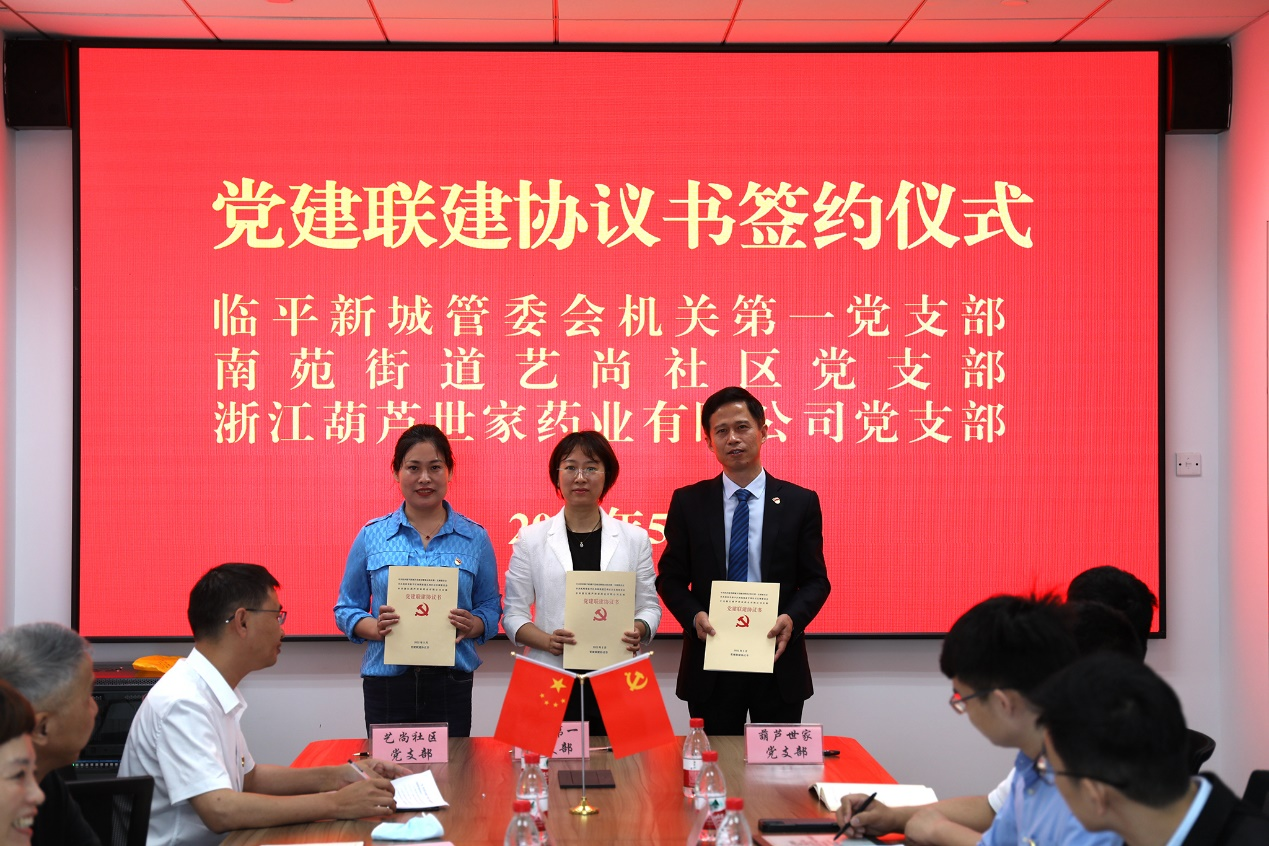 5月26日上午,浙江葫蘆世家藥業有限公司黨支部成立暨臨平新城管委會機關黨建聯建共建啟動儀式在杭州營銷中心隆重舉行。活動旨在積極響應臨平新城機關黨委“一支部一品牌”創建工作的號召和部署,打響“一支多聯,一建多彩”黨建品牌。這是集團子公司用實際行動貫徹落實劉景萍董事長提出的“黨建引領企業發展”戰略的又一生動案例。