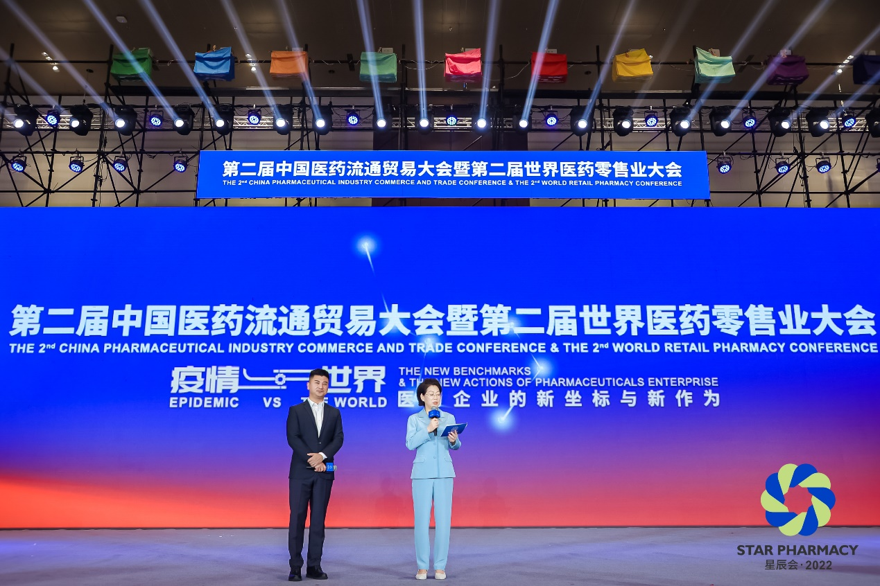 9月8日上午,由長沙市人民政府、中國醫藥物資協會共同主辦的2022年第二屆中國醫藥流通貿易大會暨第二屆世界醫藥零售業大會(第二屆星辰會)在星城長沙隆重開幕。尊龍凱時藥業集團董事長劉景萍受邀擔任大會主持人并榮獲“醫藥工業領軍人物”稱號。