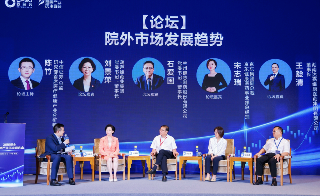 在健康產業資本峰會,劉景萍董事長作為圓桌論壇嘉賓,與行業大咖、企業家共話院外市場發展趨勢。就門診統籌政策這一話題,劉景萍認為隨著門診統籌進程的加快,將倒逼藥店提升專業化水平,制藥工業、藥店終端要共同在服務專業化上下功夫。談及醫保政策對于醫藥工業的影響,劉景萍表示,讓更多人受益于優質優價的藥品是藥企的社會責任所在,制藥企業可以通過原料藥布局降低成本、智能生產提高效率等方式實現社會價值和經濟價值的共贏,通過強化研發投入和科技創新,以差異化策略打破同質化的競爭局面。