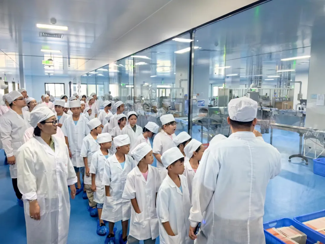 穿戴好白大褂、防護帽和防護鞋套后,孩子們興奮地踏入了智能綠色工廠。他們親眼目睹了先進的制藥設備如何高效、精準地完成藥品生產,紛紛發出驚嘆聲。了解了生產線的自動化、智能化特點,以及這些技術如何提升藥品質量和生產效率。孩子們聽得認真,還不時提出自己的問題,與講解員進行互動。
