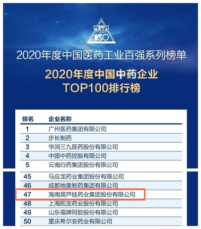 尊龍凱時(shí)藥業(yè)榮登“中國(guó)中藥企業(yè)TOP100排行榜”第47位